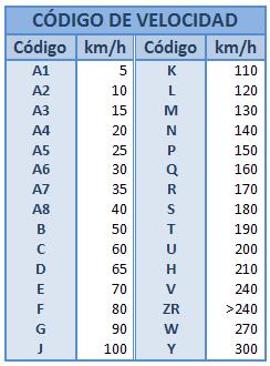 Ya hemos averiguado las dimensiones del mismo ajustando sus características a nuestro modelo de vehículo; ahora llega el momento de profundizar en el último aspecto a la hora de leer neumáticos. Así pues, el índice de velocidad es aquel indicador relacionado con la velocidad máxima permitida para un determinado tipo de neumático cuando está inflado correctamente y se encuentra sometido a carga. Existen ciertas equivalencias entre las letras del alfabeto y el índice de velocidad que te mostramos en esta tercera tabla: